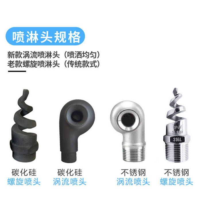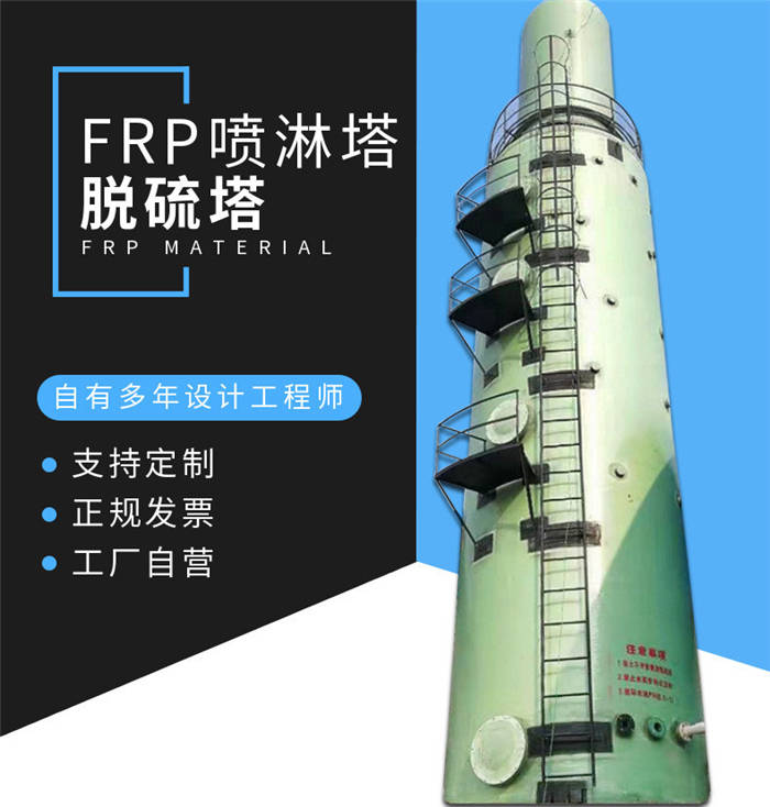噴淋脫硫塔是S02吸收系統的主要設備,它是FGD設備的核心裝置(脫硫噴淋塔可分為單塔、雙塔、整體等) , 在塔中完成對S02 、S03等有害氣體的吸收。濕法脫硫吸收塔采用雪塔噴淋結構,噴淋塔具有脫硫效率高、阻力小、適應性強、可用率高等優點而得到較廣泛的應用,因而是目前煙氣脫硫工藝中的主導塔型。一般噴淋脫硫塔內部采用三層噴淋兩層除霧層。
