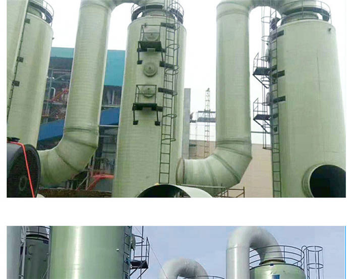 噴淋脫硫單塔采用碳鋼內襯花崗巖,制作成分體模塊結構,合(或制作成整體鋼制塔內襯花崗巖) ?,F場吊裝組,單塔噴淋用于初始粉塵濃度較低的煙氣,內置旋流板、折流板除霧器、反沖洗噴淋裝置,洗滌噴淋裝置三層, S0 2去除效率達95% 以上。